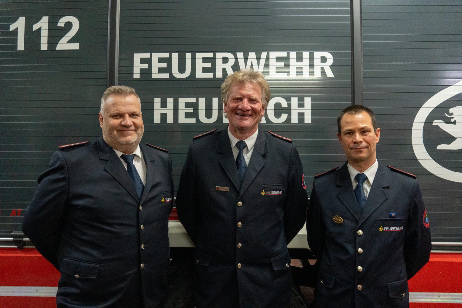 Die Abteilungsführung Heubach mit dem Gesamtkomandanten. Abt.Kdt. Hauptbrandmeister Stephan Kuhn, Stadtbrandmeister LHBM Heinz Pfisterer und Stellv. Abt. Kdt. Löschmeister Jörg Feller.